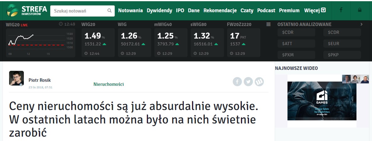 I tak z jednej strony "guru" od inwestowania grzmieli: rynek nieruchomości to bańka, czeka nas największy kryzys w dziejach, mieszkanie na wynajem się nie opłaca!!! I inwestuj w REITy.